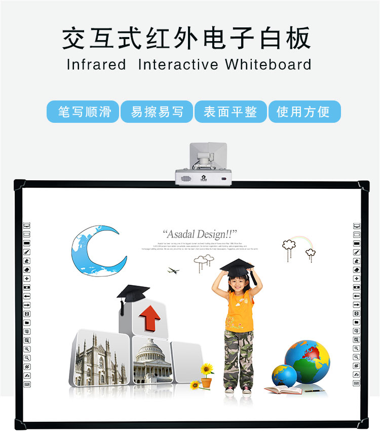 紅外電子白板是搭配多媒體91香蕉视频污版和投影機同步使用,納米麵板折射光源保護視力